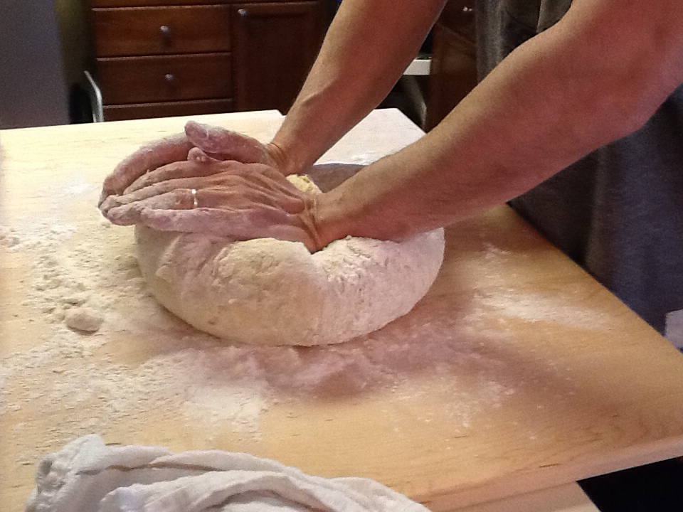 “Punch the Dough down” (all this means is flatten it to let the air out and make another ball!) and let it rise again until doubled in size!