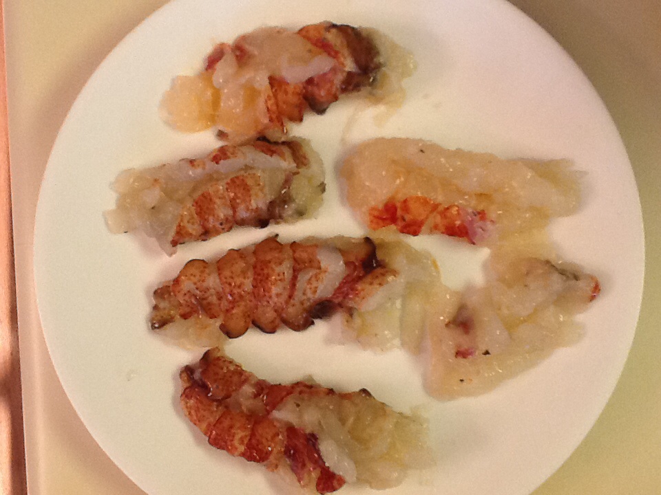 I love all kinds of seafood, especially shellfish. Among my favorites is lobster! I found a sale on lobster tail today so I decided to do butter poached lobster! The fancy French name for the poaching liquid is, Beurre Monte’. I have modified the traditional approach by adding chicken broth to the liquid. A simple, but key part of making the poaching liquid is to start by putting 2 tablespoons of water in a saute pan and bringing it to a boil on medium heat. You need about one stick of butter per lobster tail. It sounds like a lot, but you won’t regret it! Cut the butter in one inch pieces. Add one piece at a time after the water comes to a boil, and whisk continuously. After a few pieces of butter you can start to add multiple pieces at a time.