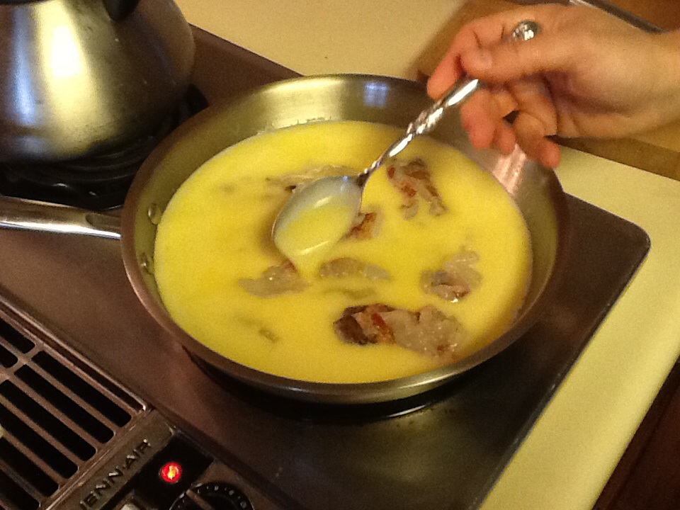 After all the butter is melted, I add about half a cup broth, slowly while continuously whisking. This adds a flavor I like! You don’t need to do this, but it adds a texture and flavor that melts in your mouth!