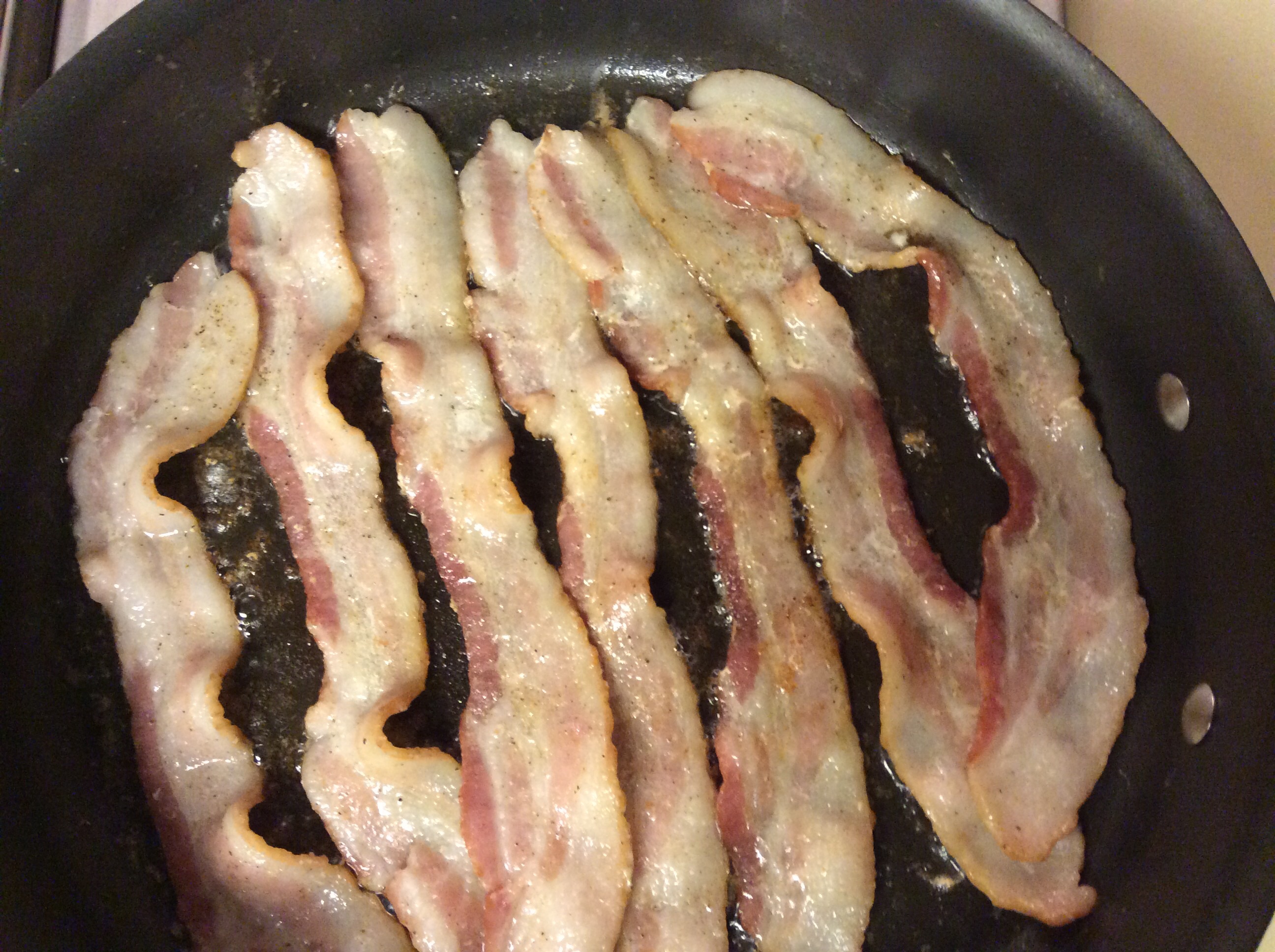 A bad piece of bacon (yes, it’s possible) can ruin a dish as much as a good piece can enhance it!! I know this may seem basic, but bacon adds so much to many dishes that I don’t think it can be taken for granted. Bacon can be baked, microwaved, or cooked many other ways, but the best, most effective (in my opinion!), is to fry it, You could just throw it in a pan and fry it and it would be just fine, but I have found that if you spend time with it, care for it while it’s in the pan, you will get the best results.