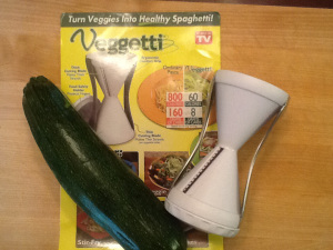 Those of you that know me, know that I usually don’t think too much about calories when I cook. My friends Rena and Vic are very health conscious but also love a good italian meal. Sometimes those two things can clash. They bought me this kitchen tool that may just change the way I think about pasta! This dish dropped an 800 calorie, 160 gram of fat dish to 60 calories and 8 grams of fat! This zucchini pasta tasted so much like real pasta I had to tell the people I served it to that it wasn’t pasta! I may just be a kitchen gadget guy after all! This tool is called a Veggetti, but you could make this with a mandolin or by using a potato peeler and making larger pasta “noodles”!