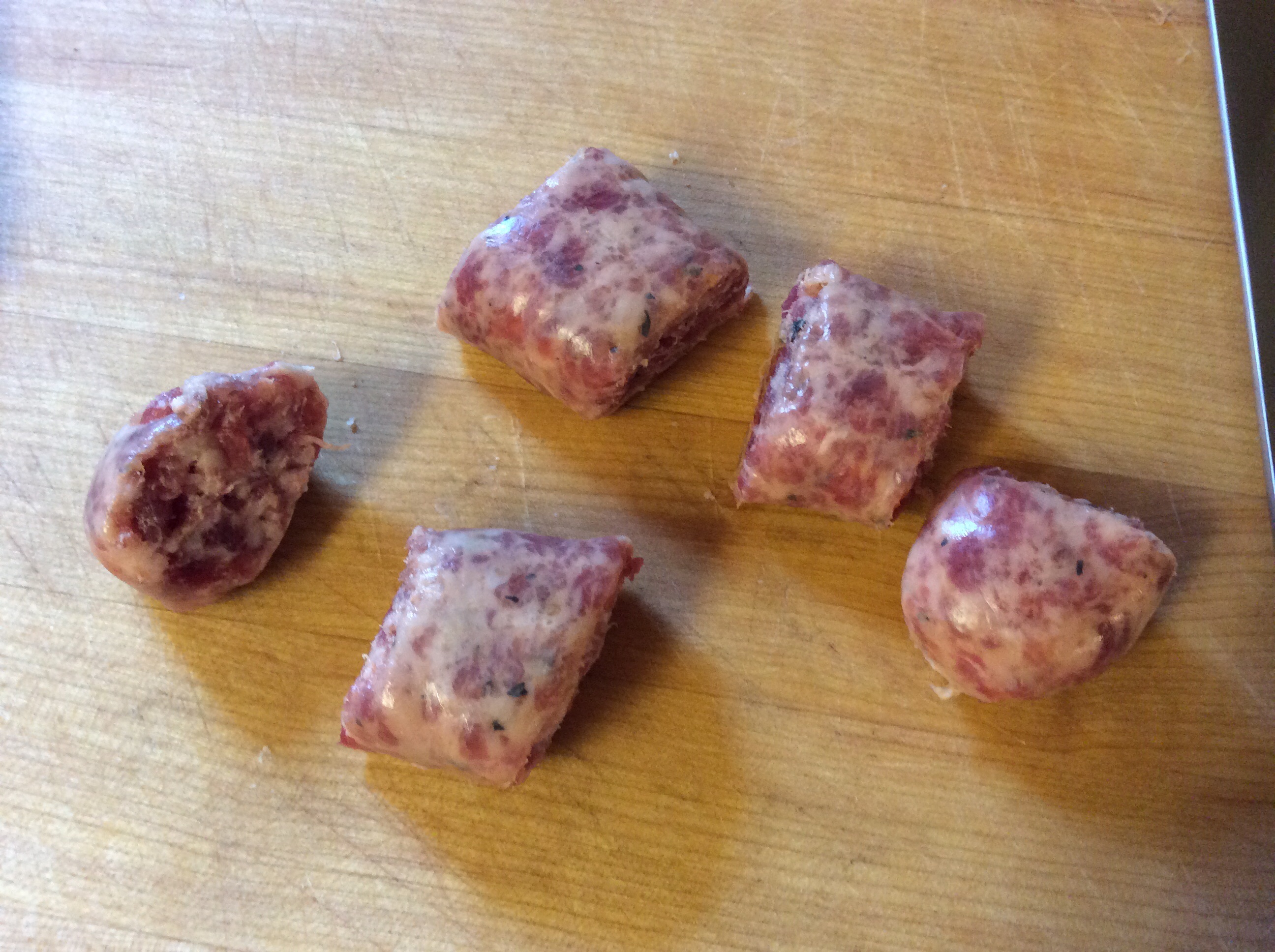 Cut the sausage into 1 inch pieces (about 5 per link)