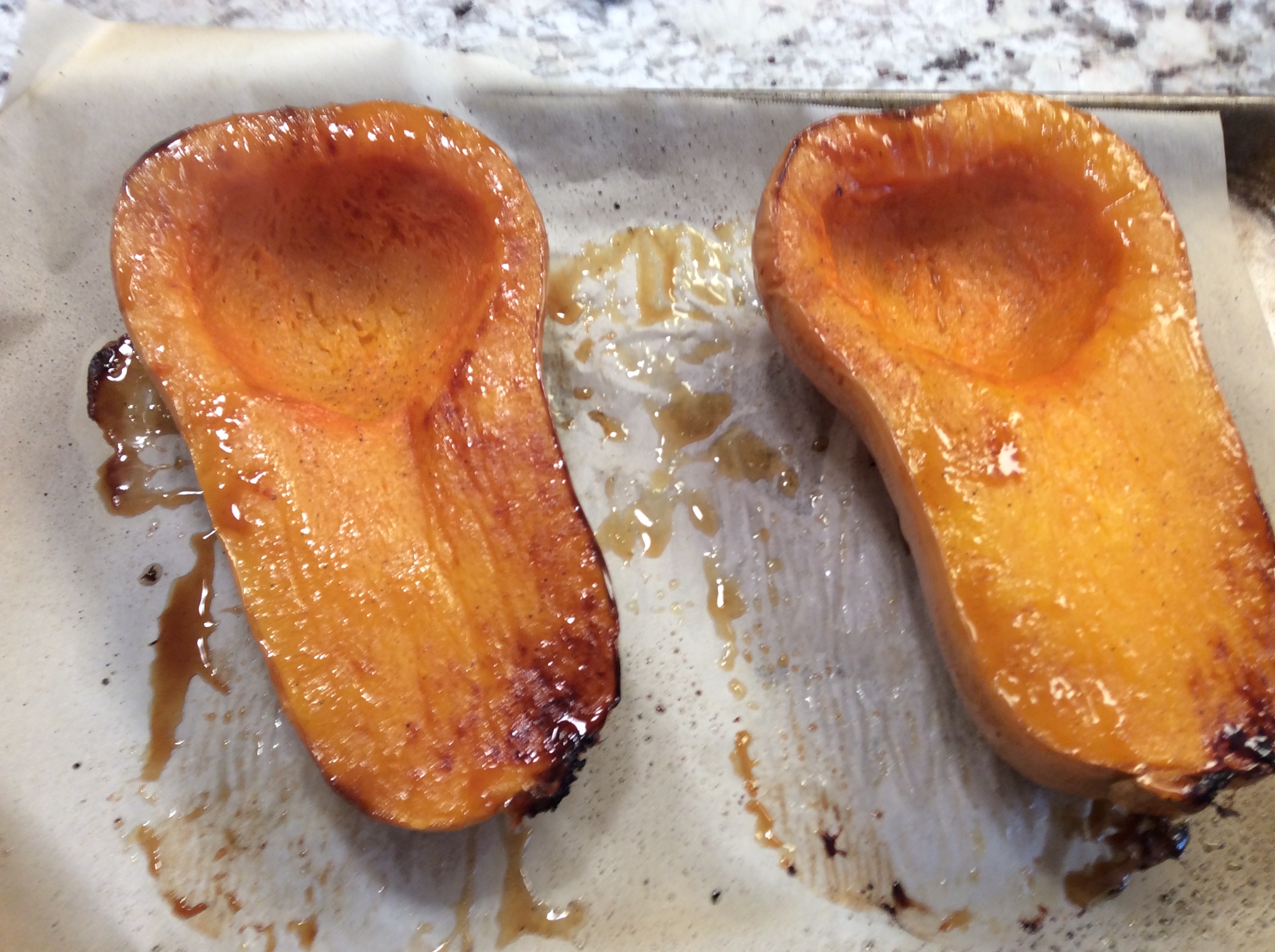 Two large butternut squash (about 6 pounds), halved vertically and seeded