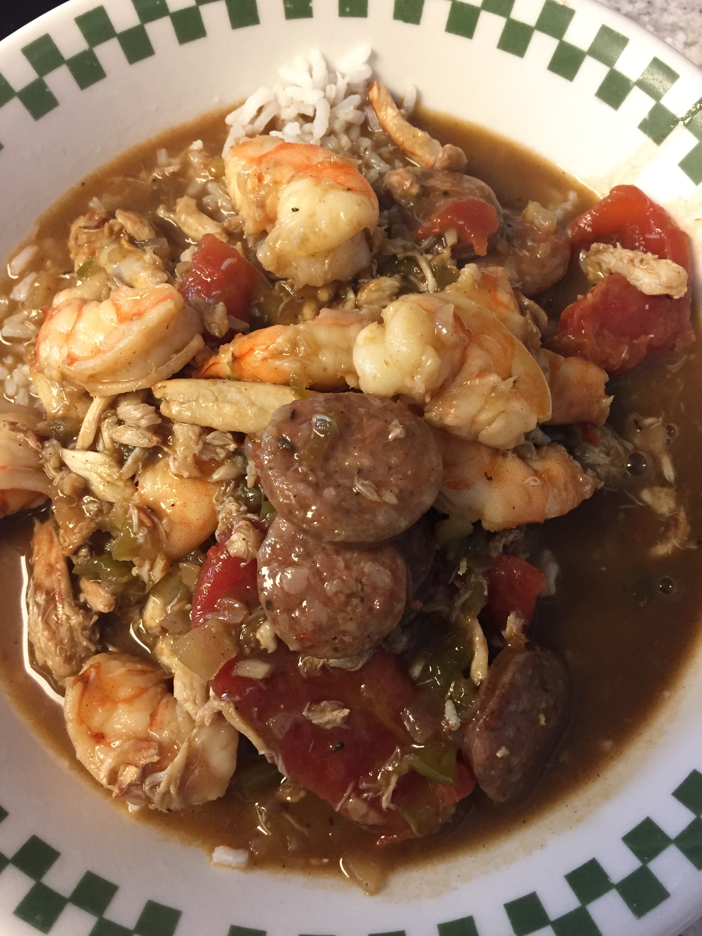 This gumbo is fantastic and the key to it is the roux! You must watch over the roux constantly and cook it until it’s a rich dark color.