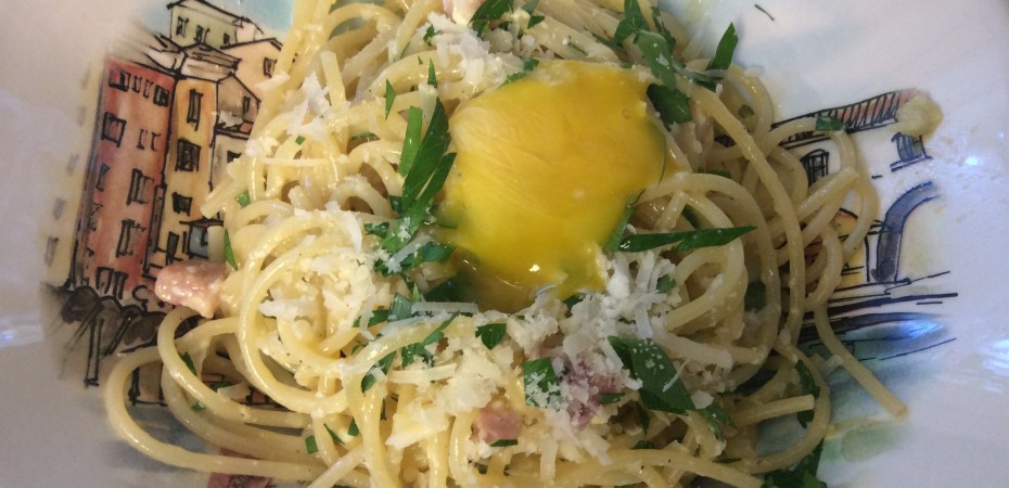 It’s hard for me to believe that I have never posted about Carbonara because it’s one of my wifes absolute favorites. On the three trips we’ve taken to Italy I think she’s tried them all! This recipe can be made with any kind of pasta but spaghetti and tortelliniare our favorites.