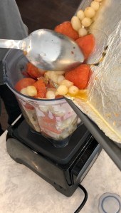 - Transfer all contents of the baking dish including the liquids to a blender and pulse for 3-5 seconds.