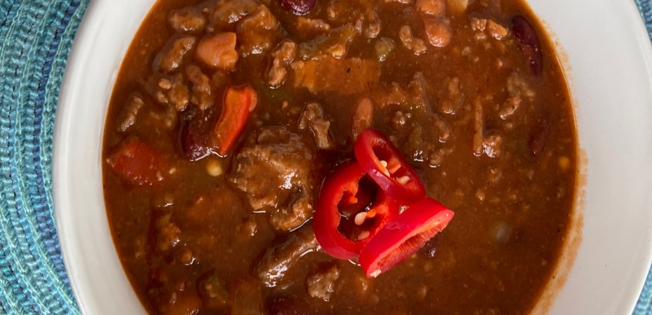 I started this recipe with an award winning recipe from panningtheglobe.com. It’s eddies award winning chili and here is the direct link: https://www.panningtheglobe.com/eddies-award-winning-chili/ . I slightly changed the recipe because I could not find poblano peppers and I added serrano’s because I like the flavor and punch they provide.